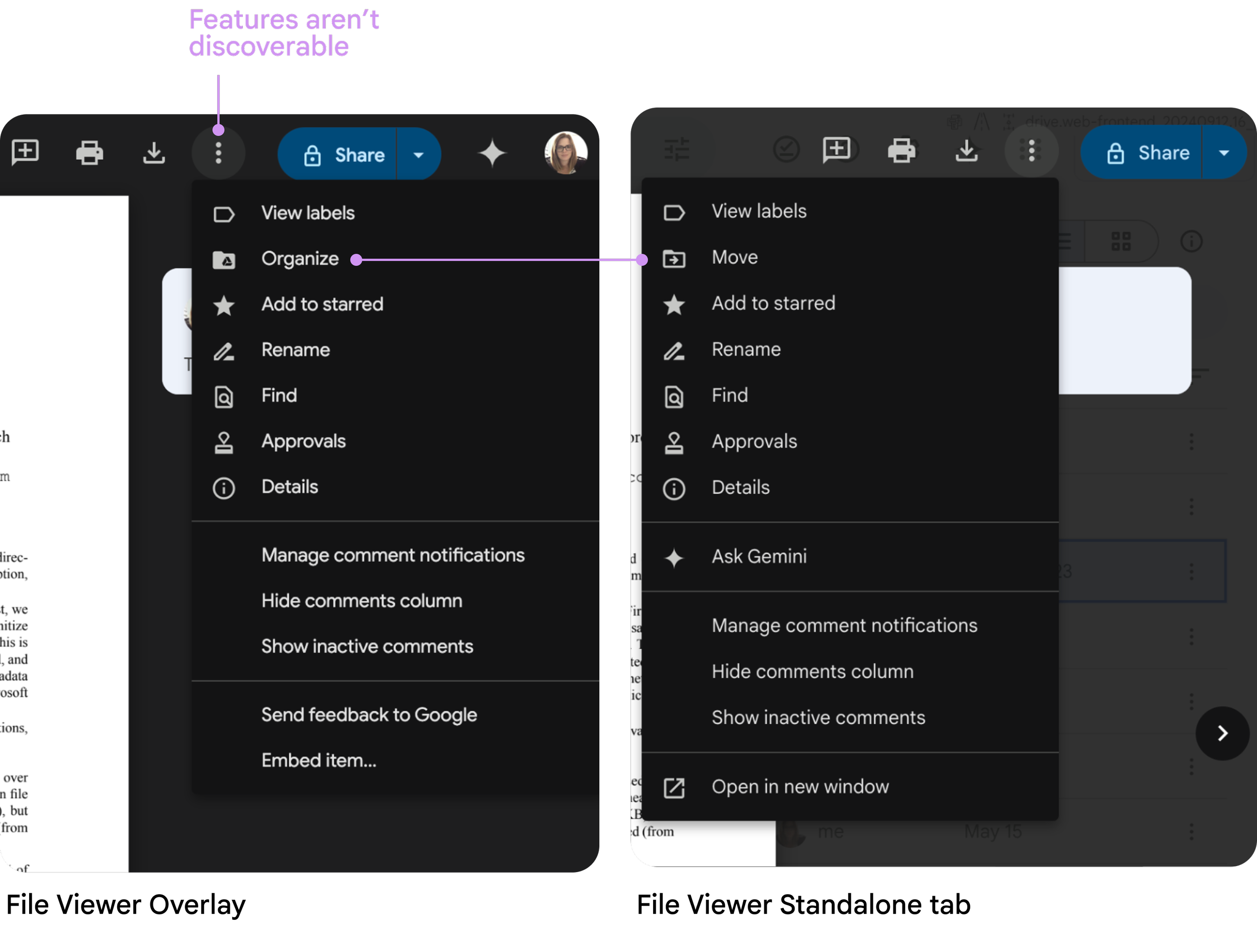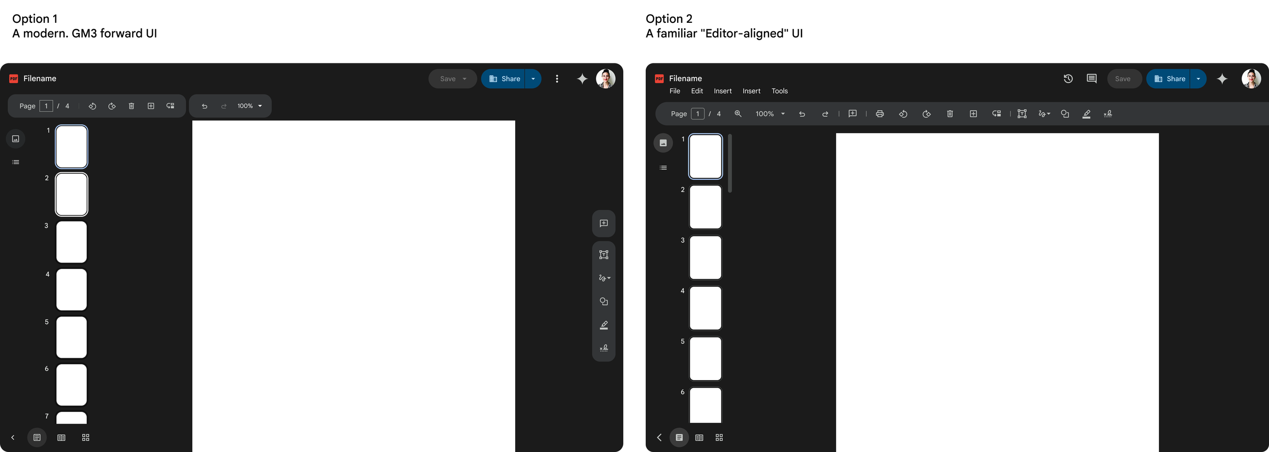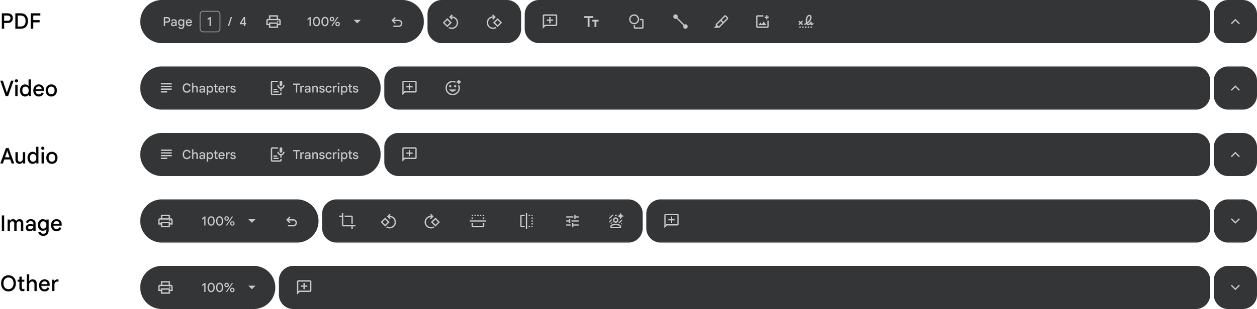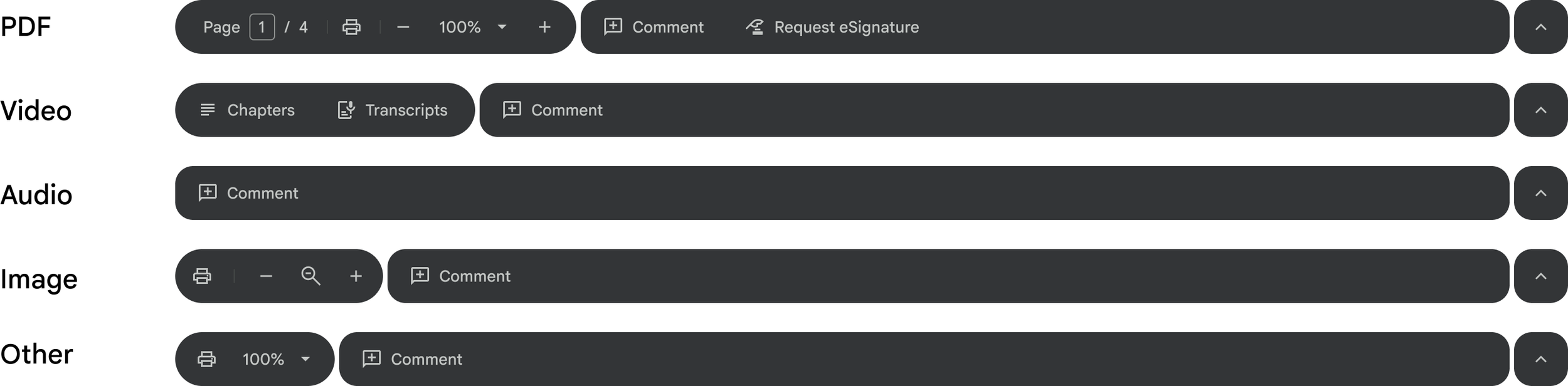 I successfully advocated for a unified navigation system across all files types in the File Viewer, no just PDFs. By standardizing menus and toolbars into a scalable framework, we could deliver a cohesive navigation for third party files types across all of Workspace.